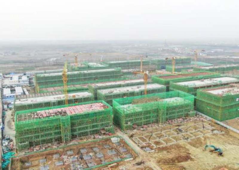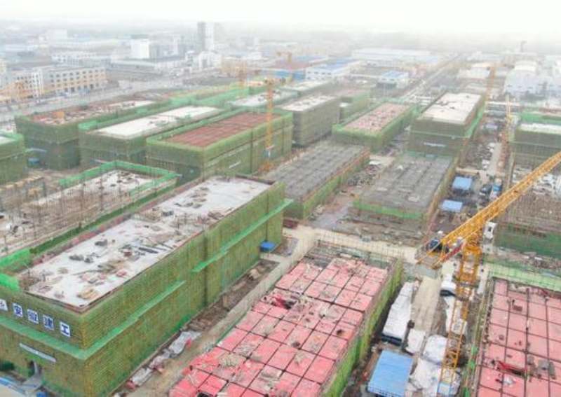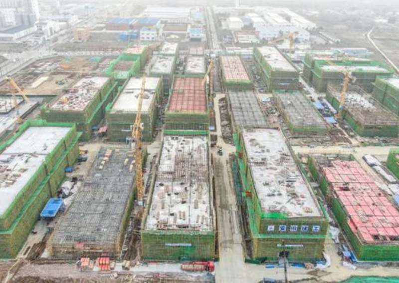 走進建設現(xiàn)場,只見塔吊林立、機聲轟鳴,一棟棟廠房已拔地而起。